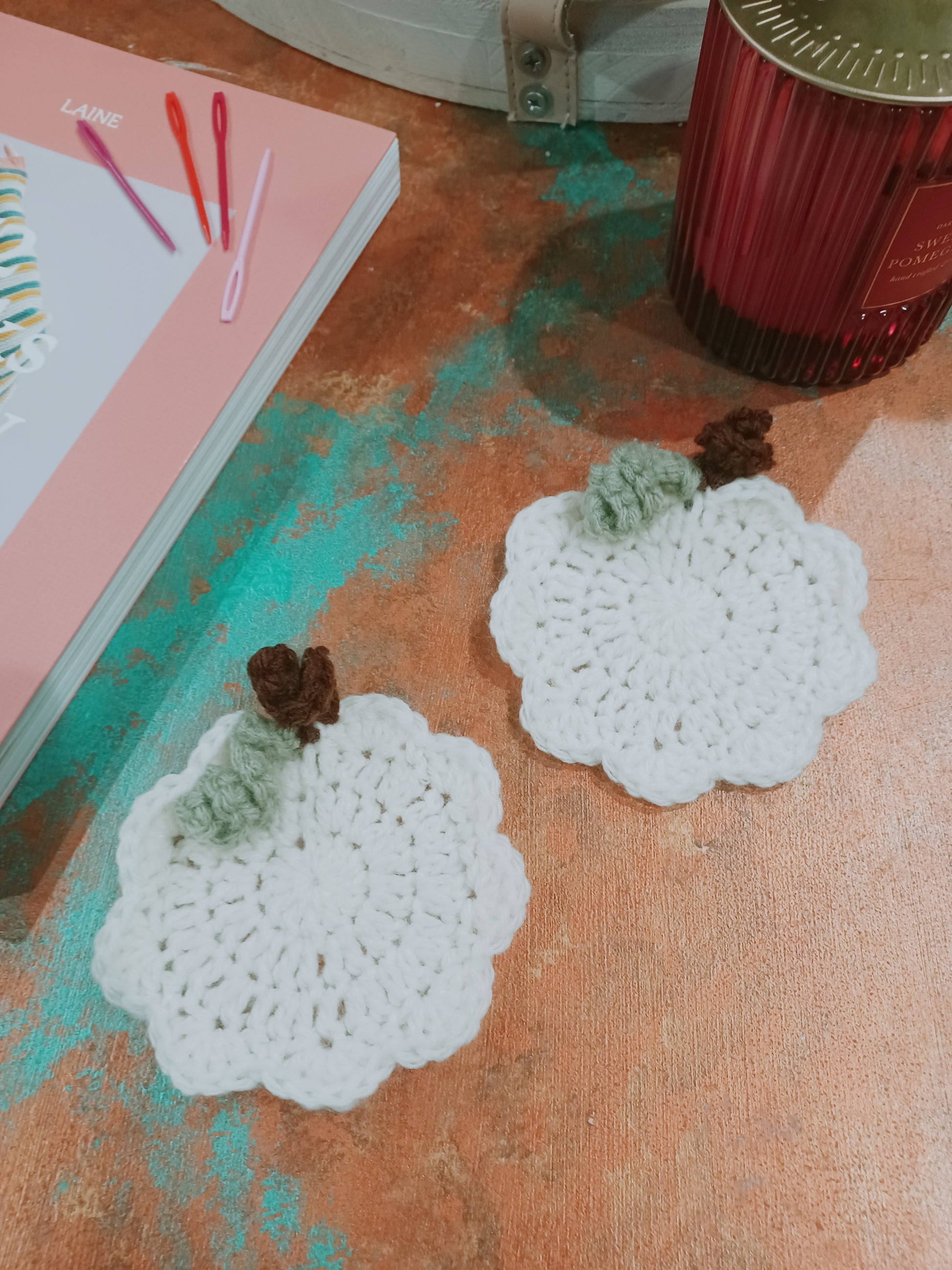 Cool weather and sweaters... scented candles and warm fireplaces... and, of course, pumpkins galore! Enjoy a cozy slice of fall with these fun, seasonal coasters! Each set is made of two handmade coasters, designed to personalize your table while keeping it clean and neat. Perfect fall perfection!